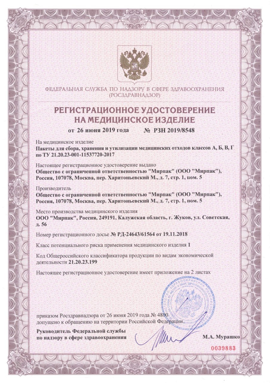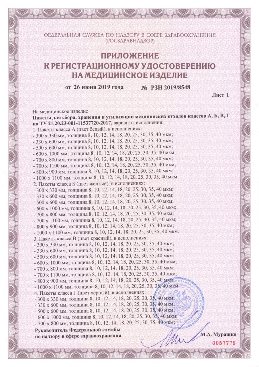 Пакет для утилизации медицинских отходов, 14 мкр, 60 л., 700*800 мм. (класс А) 50 шт. рулон